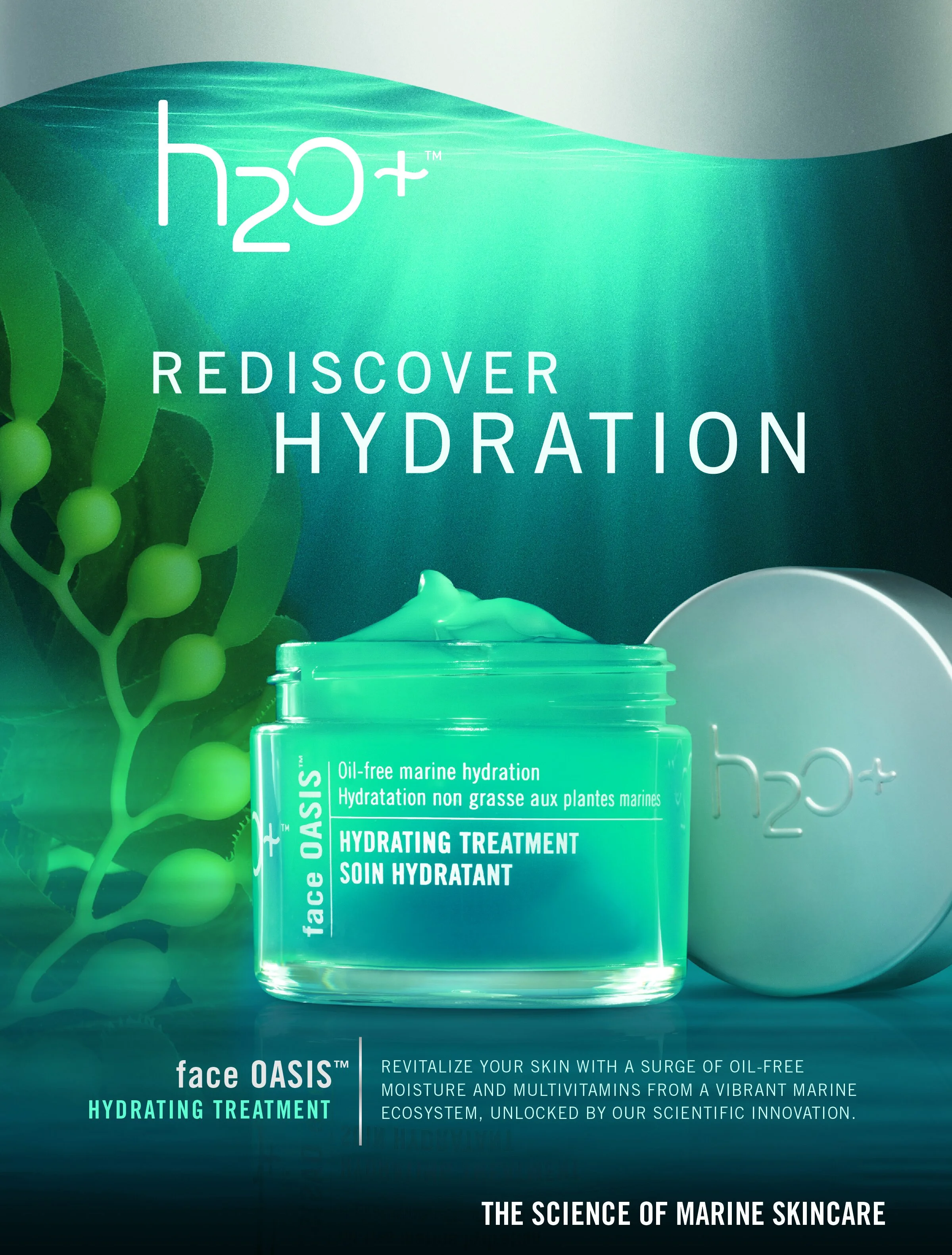 H2O Plus wanted to pivot from a sunny, beachy brand to the show the serious skincare benefits of the sea. A new logo was designed with a scientific feel and a new tagline, The Science of Marine Skincare. The visual concept shows seaweeds in colorful artwork compositions to look like they are underwater. The copy speaks to the specific benefits of the sea ingredients and how they improve the health of skin conditions.